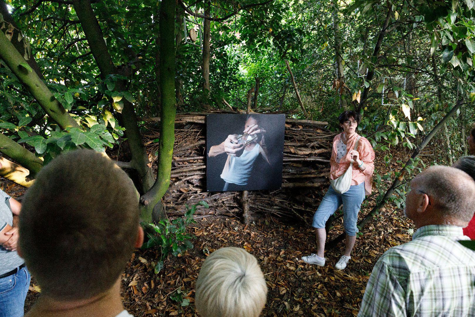 Gerda Drieghe, curator van BB25, gaf ons een woordje uitleg bij de werken van beeldhouwer Paul De Wachter.